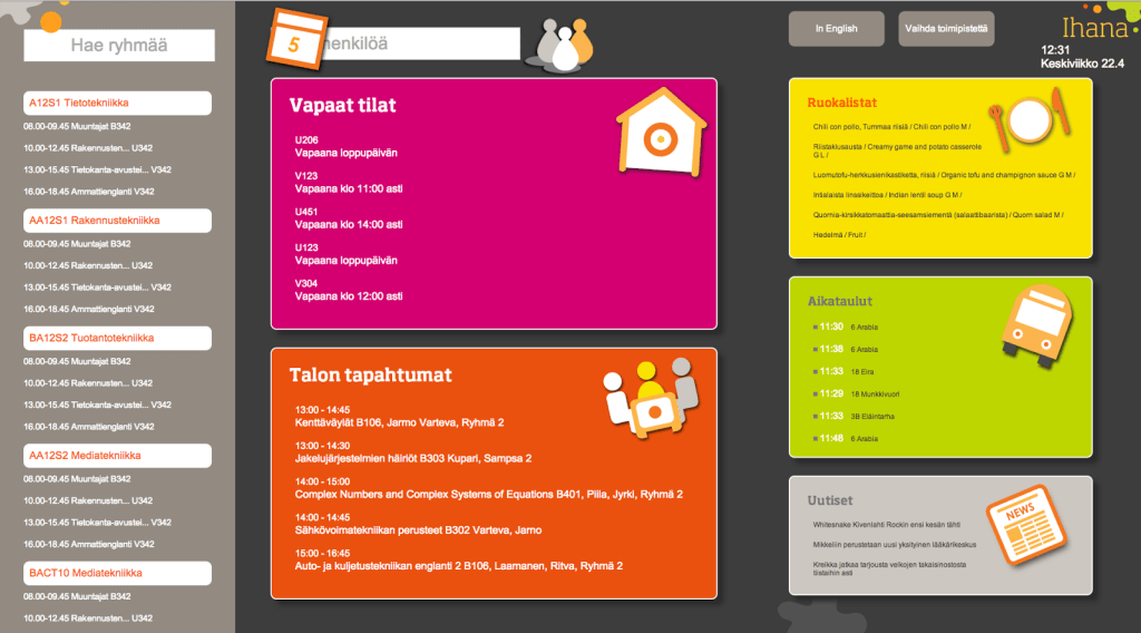 Kosketa touch screen service on Uni lobbies